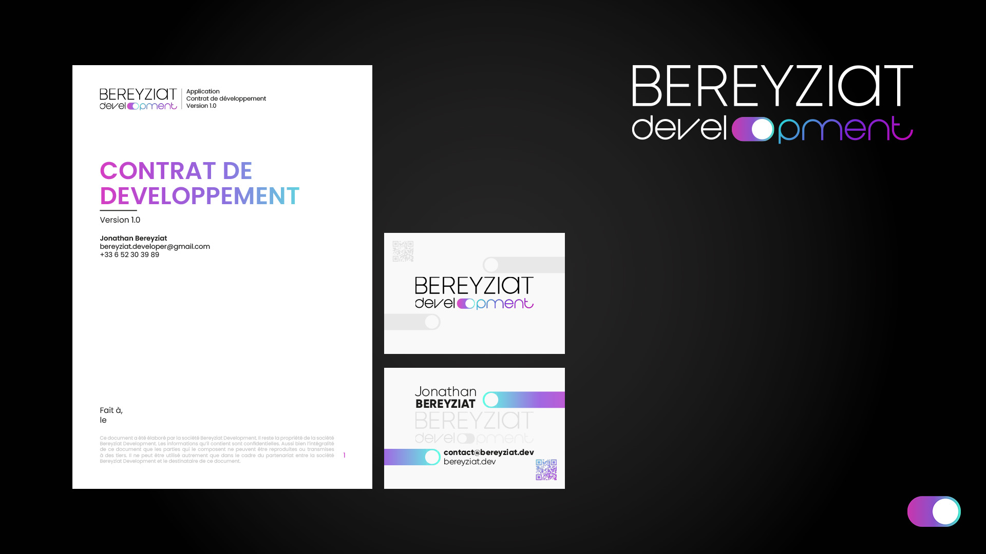 J’accompagne ponctuellement Jonathan depuis bientôt 8 ans dans la réalisation de projets et j’ai dans ce cadre eu l’occasion de travailler directement pour la création de son identité visuelle (Logotype, carte de visite, contrat etc.)